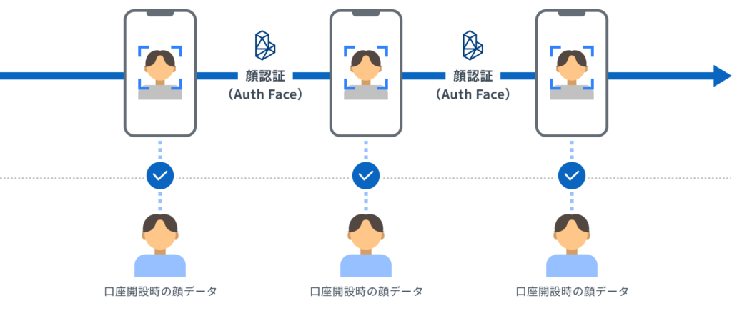 アカウント作成時の顔データとサービス利用時の顔データを照合します。