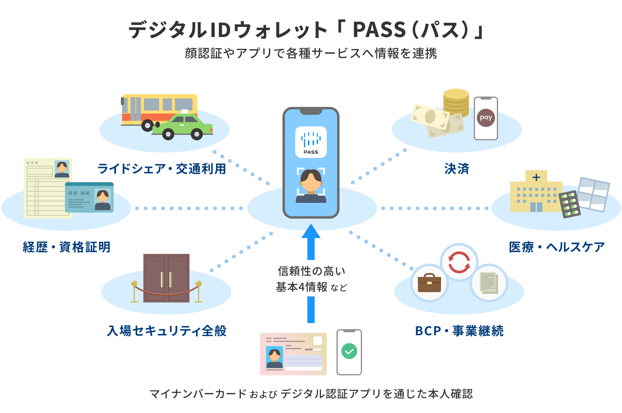 「PASS」は、本人確認情報や資格、決済、資産、健康情報など、